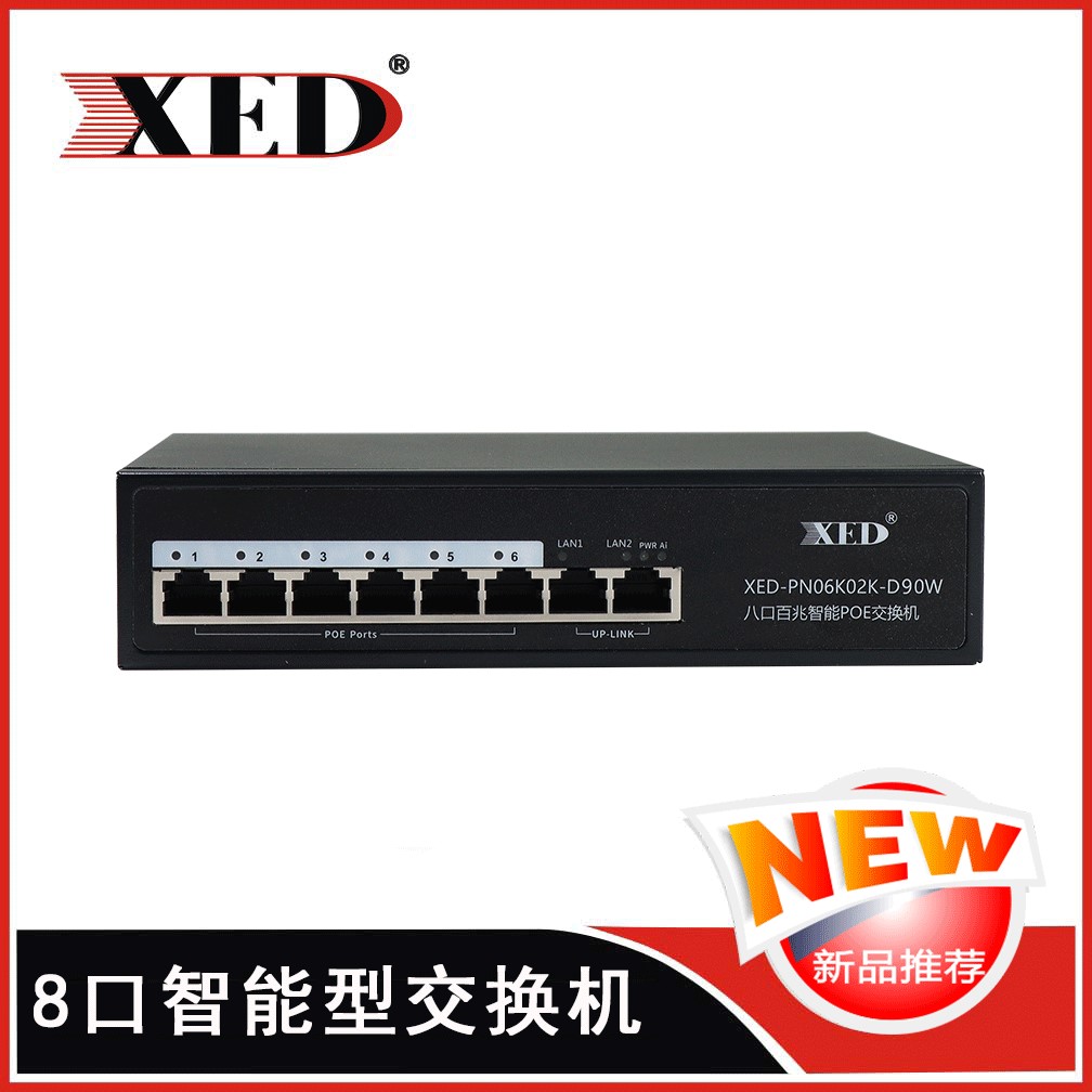 XED-PN06K02K-D90W 6+2 百兆非管理型 POE交換機(jī) 可通過(guò)網(wǎng)線(xiàn)為無(wú)線(xiàn)AP,攝像頭等PD設(shè)備提供最大單端口30W...
