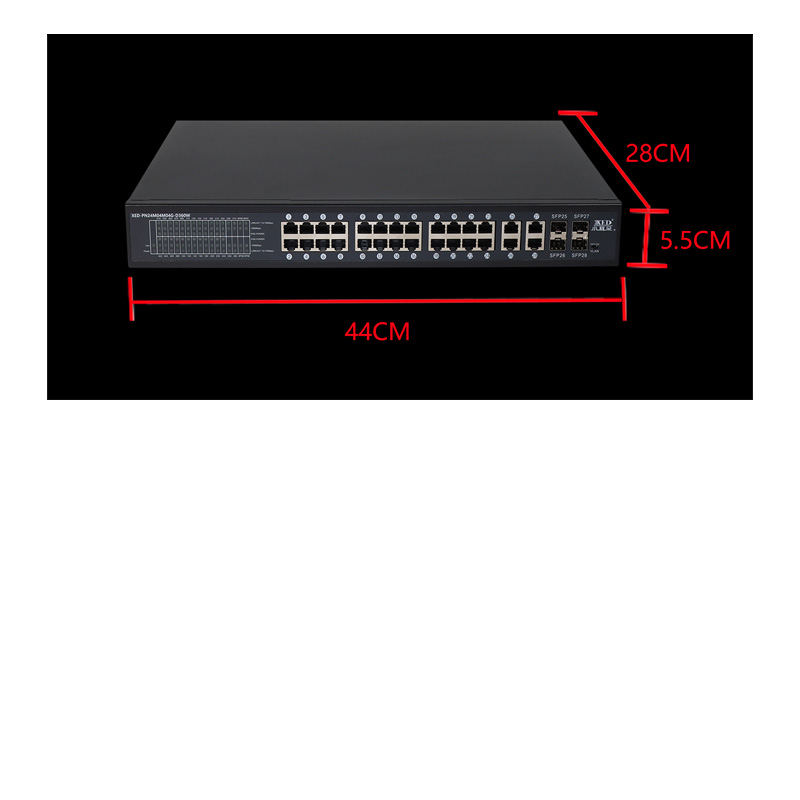 提供24個10M/100M/1000M自適應端口,4個上行10M/100M/1000M自適應端口,4個千兆SFP光口;