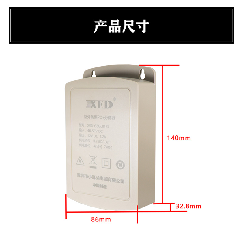 帶隔離的標(biāo)準(zhǔn)PoE分離器,電壓DC46-55V 1.2A。
