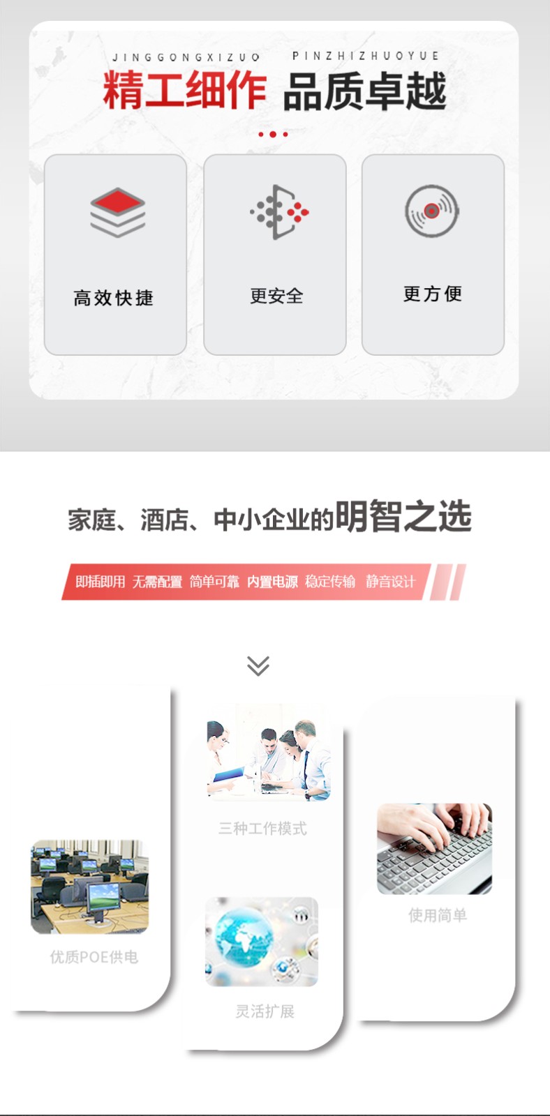 ? 先進(jìn)的自感知算法只為IEEE 802.3af/at標(biāo)準(zhǔn)的終端設(shè)備供電,不需去擔(dān)心會(huì)損壞私有標(biāo)準(zhǔn)的POE或非POE設(shè)備;