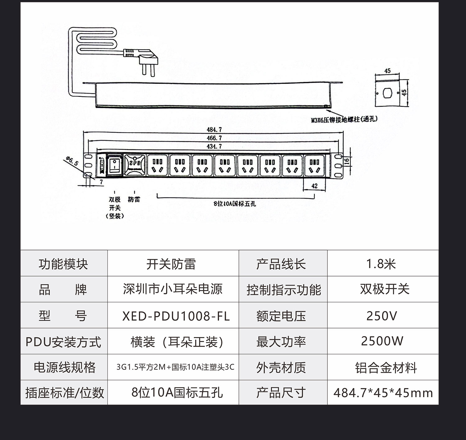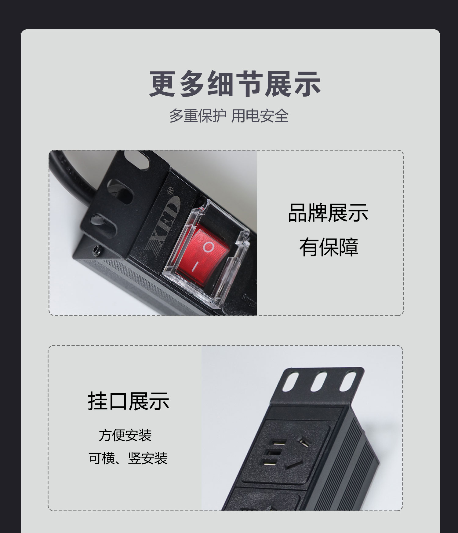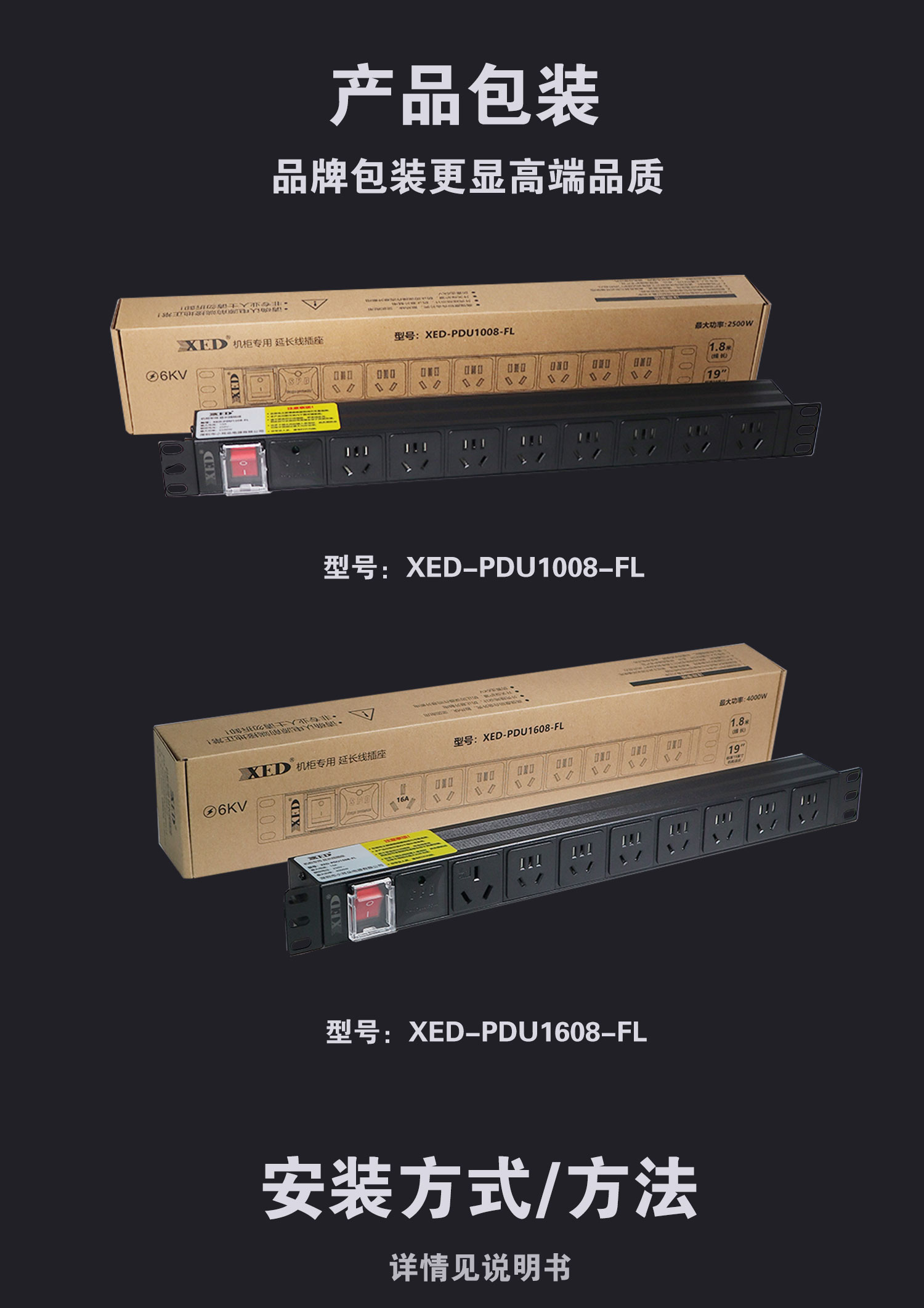 XED-PDU1608-FL、XED-PDU1008-FL 8位10A/16A 國(guó)標(biāo)五孔