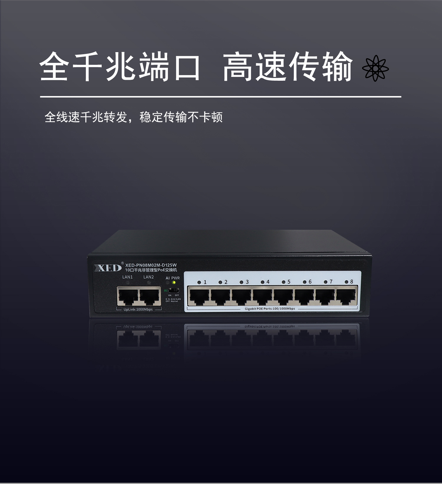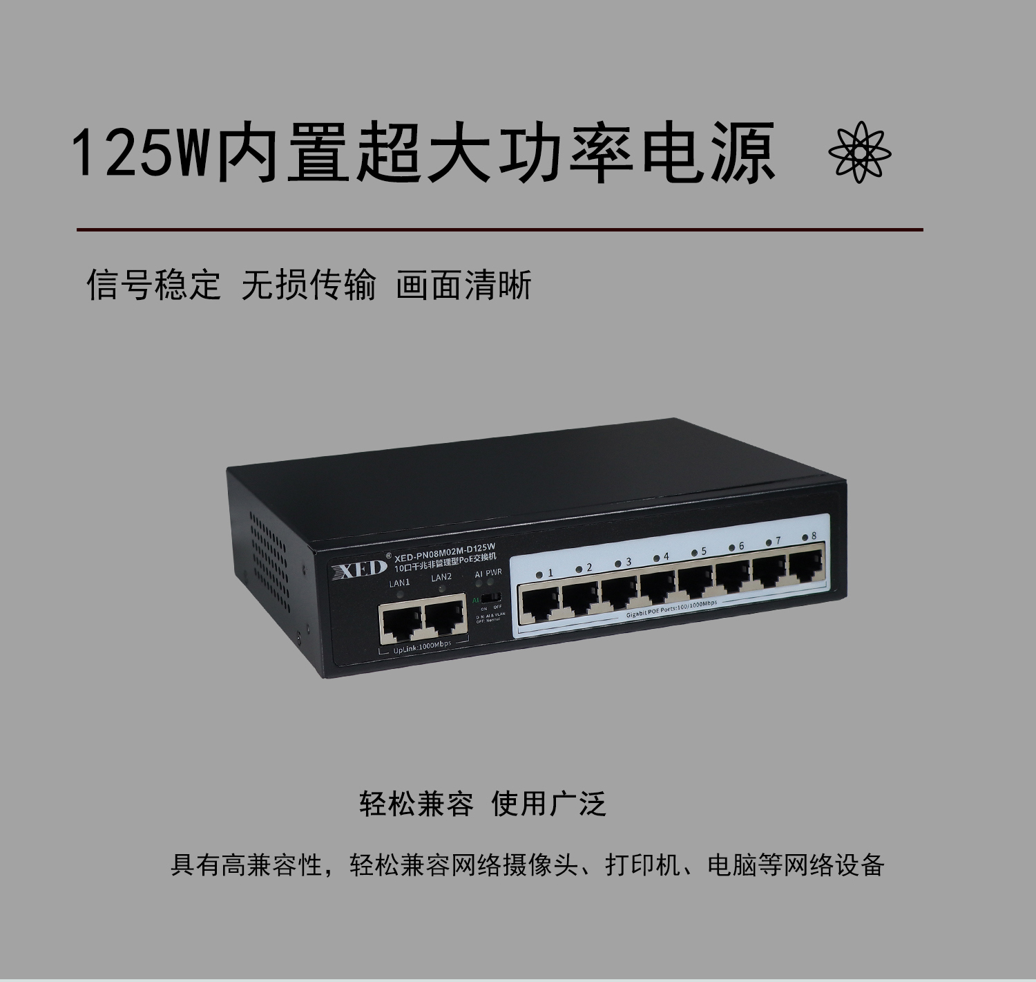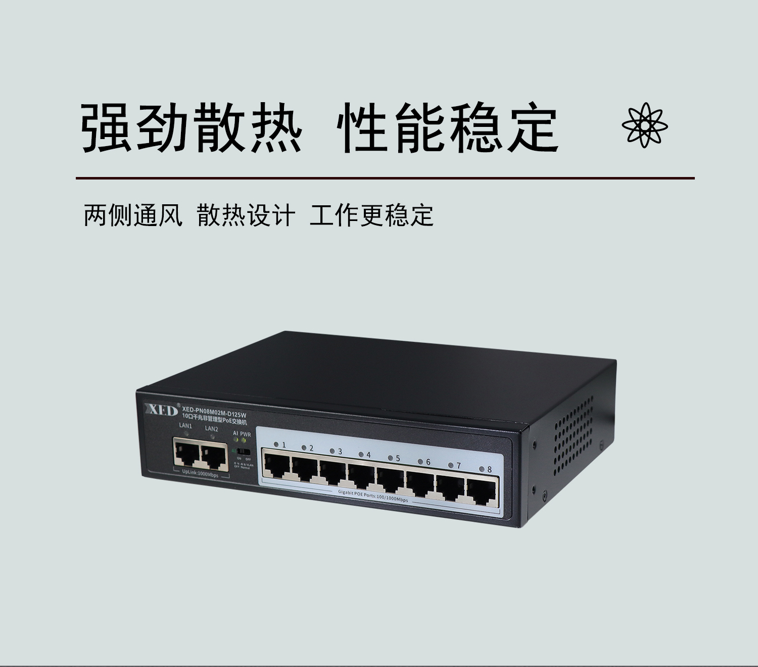 支持8口標(biāo)準(zhǔn)POE輸出,滿載功率125W;