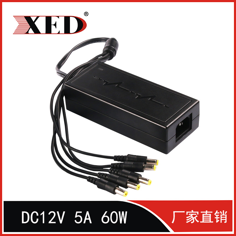 XED-5013S-5CH一拖多雙線電源,1出5 60W桌面式雙線多路電源適配器。
