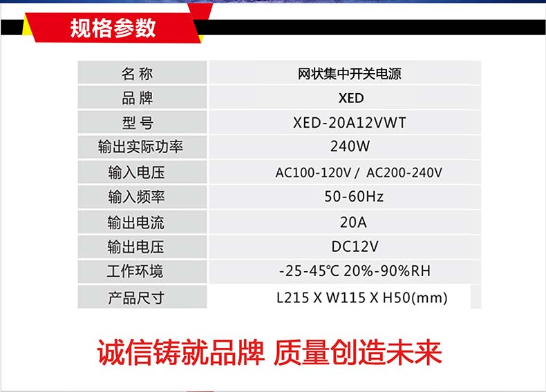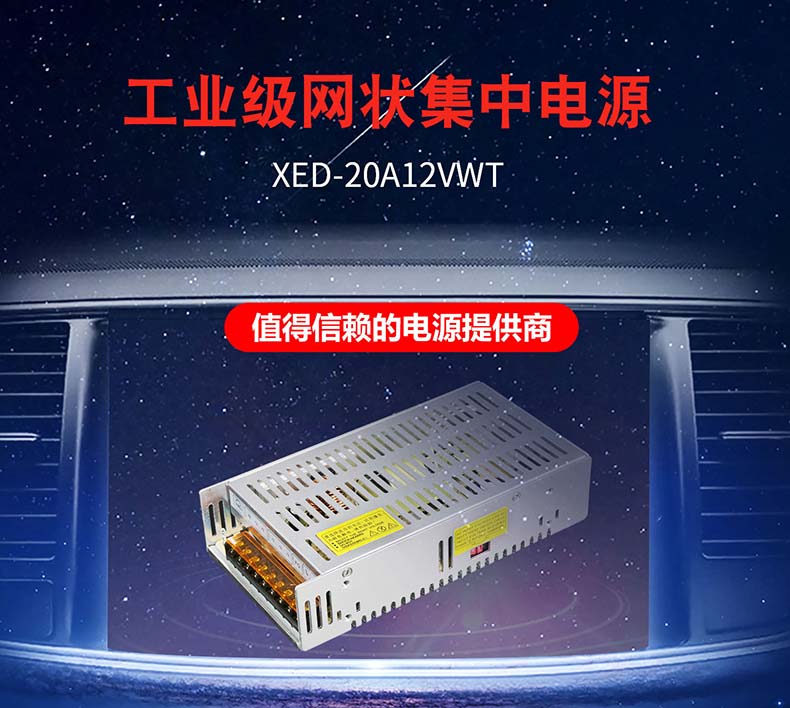 XED-20A12VWT網(wǎng)狀集中開關(guān)電源,AC100-240V寬電壓輸入。