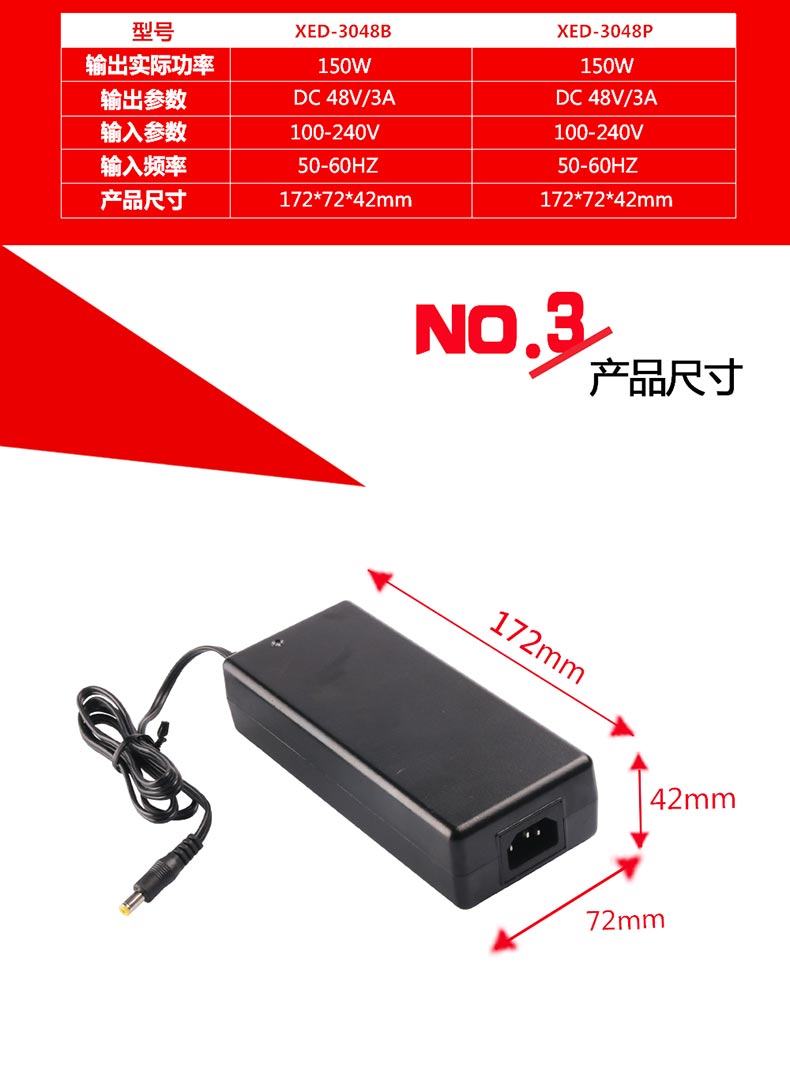 XED-3048P品字尾POE電源適配器,48V桌面式POE電源。