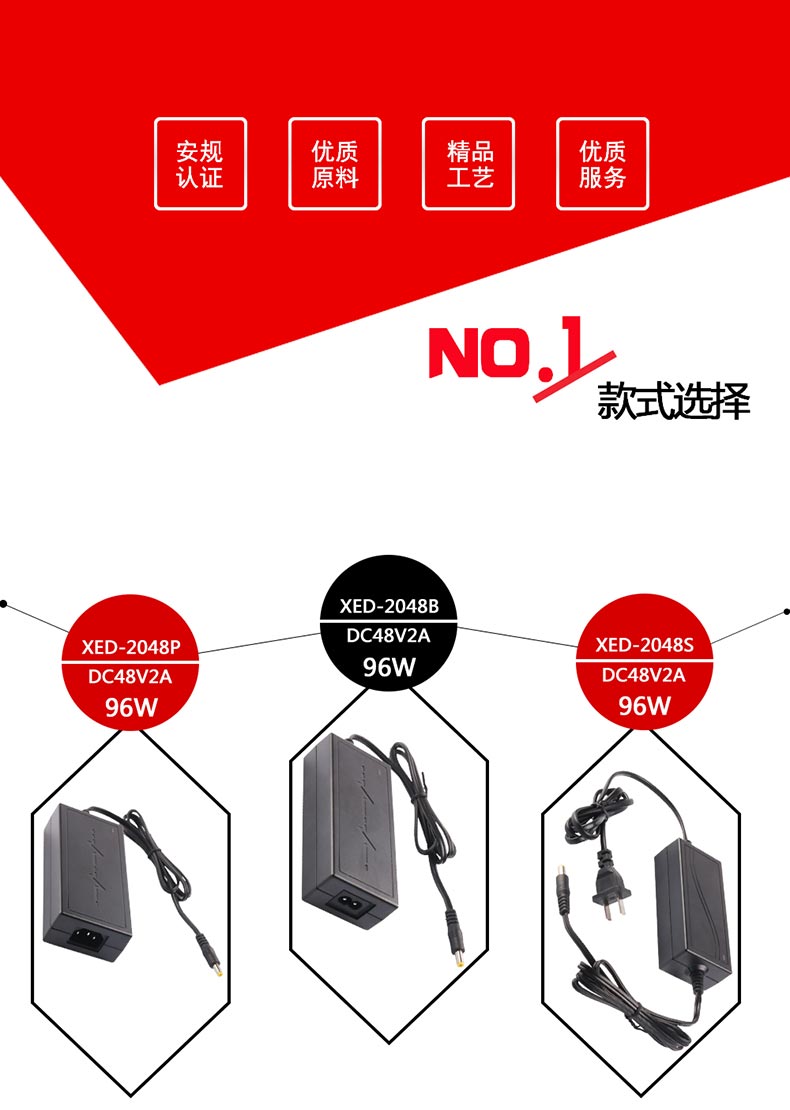 XED-2048P品字尾POE電源適配器,48V桌面式POE電源。