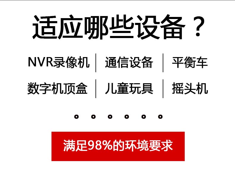 可適用范圍監(jiān)控安防、軍工設(shè)備、科研設(shè)備、LED照明、工控設(shè)備、通訊設(shè)備、電力設(shè)備、儀器儀表、工業(yè)自動(dòng)化控制、數(shù)碼產(chǎn)品、視聽產(chǎn)品和儀器等。