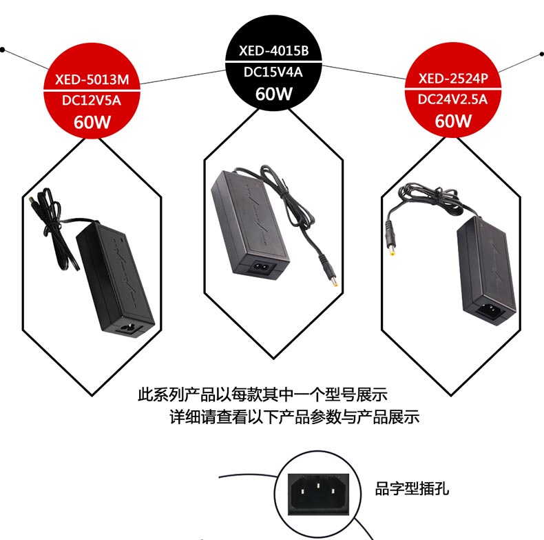 XED-2524B八字尾電源適配器,60W桌面式電源適配器。
