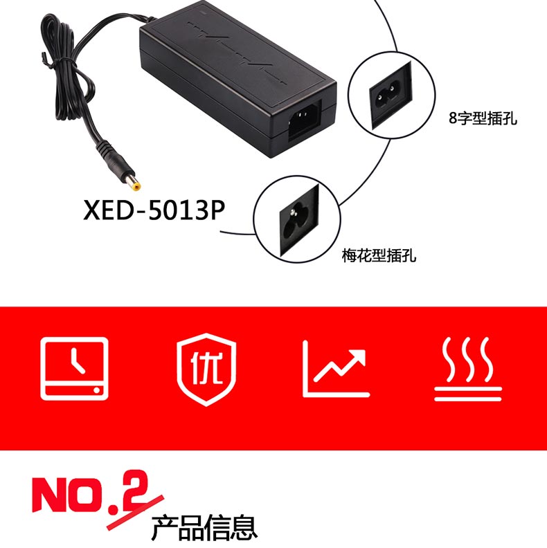 XED-5013P品字尾電源適配器,60W桌面式電源適配器。