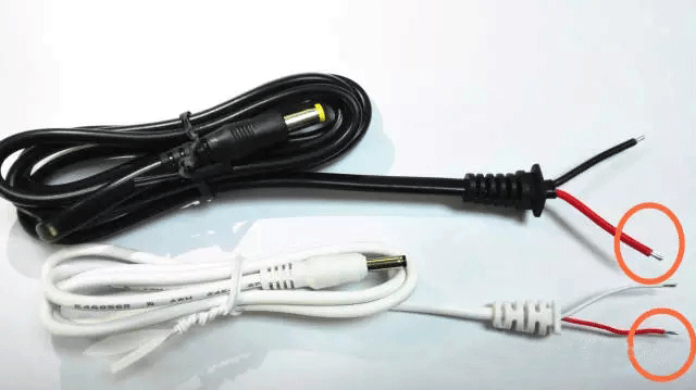 (如下圖)兩款線材紅色圈圈的為正極,并且有一排不同顏色點點;另外一根為負極。