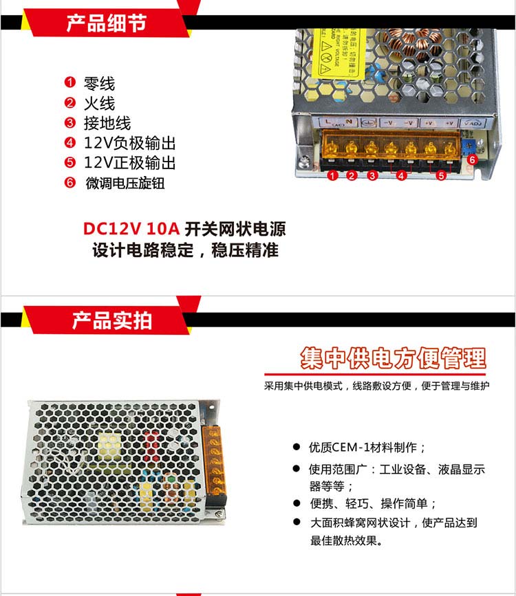 XED-10A12VWT網(wǎng)狀集中供電開關(guān)電源,寬電壓AC100-240V輸入。