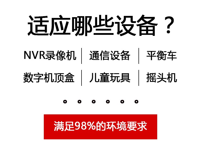 可適用范圍監(jiān)控安防、軍工設(shè)備、科研設(shè)備、LED照明、工控設(shè)備、通訊設(shè)備、電力設(shè)備、儀器儀表、工業(yè)自動(dòng)化控制、數(shù)碼產(chǎn)品、視聽(tīng)產(chǎn)品和儀器等。