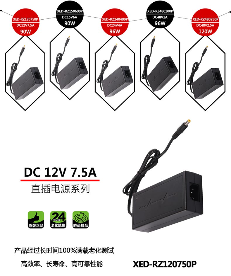 XED-RZ120750P品字尾電源適配器,90W桌面式電源適配器,能過(guò)6級(jí)能效,通過(guò)多國(guó)認(rèn)證。